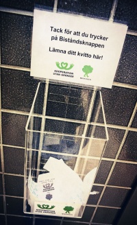 – Vi vill testa om man kan få upp andelen som skänker genom att göra generositet synligare. Tanken är att sätta upp en genomskinlig plastlåda där man lägger det kvitto som man får när man skänker pantpengarna. Detta kvitto slängs annars vanligen i soporna, men på det här sättet visar man istället för alla andra att man har skänkt, samtidigt som man ser att andra har skänkt. Nu finns alltså två nya anledningar till att välja biståndsknappen: att visa för andra att man skänker och att man ser hur andra har gjort och därför gör likadant.