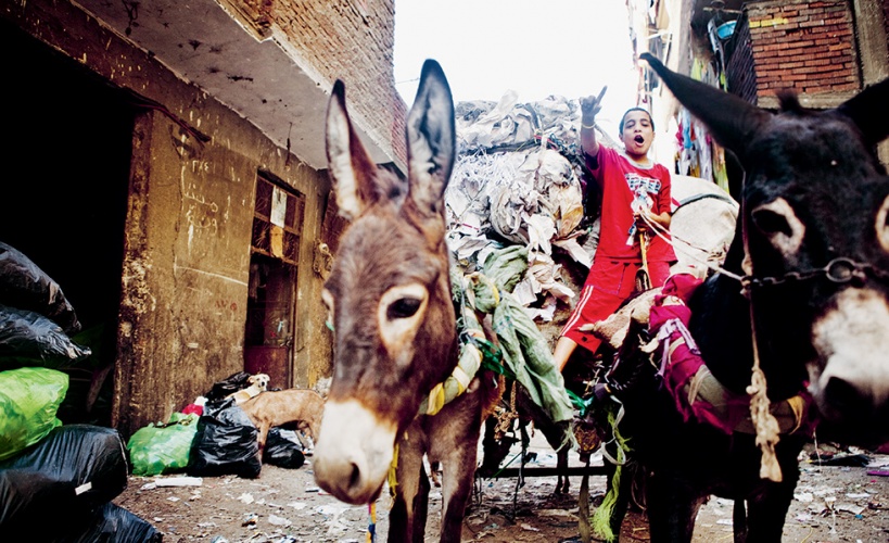Det är ingen slump att Solar Cities valt Manshiyet Nasser som bas för sitt energiprojekt. Området i skuggan av den kristna koptiska kyrkan är hem för 6 500 familjer, kända som zabaleen, Kairos sopsamlare. Zabaleen försörjer sig på att samla in, sortera och återvinna de 4 500 ton sopor som invånarna i Egyptens huvudstad lämnar efter sig varje dag. Lastbilar och åsnekärror fullastade med sopsäckar kryssar varsamt mellan hålen i de trånga gatorna för att inte riskera den dyrbara lasten. Solstrålarna som letar sig in i trapphus och på bakgårdar landar på berg av plastpåsar, gamla tidningar, glasflaskor och kasserade hushållsmaskiner. Från mat till möbler, allting tas tillvara. Medan andra städer kämpar med att återvinna en liten del av sitt avfall, återvinner zabaleen upp till 85 procent av Kairos sopor.